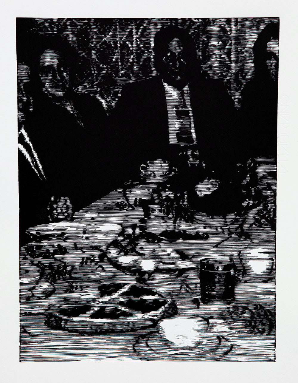 Linocut, ink on etching paper