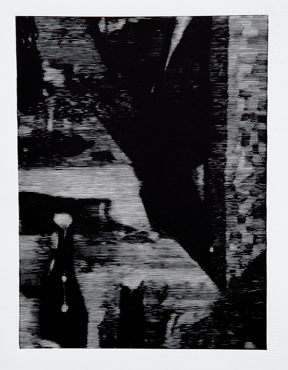 Linocut, ink on etching paper